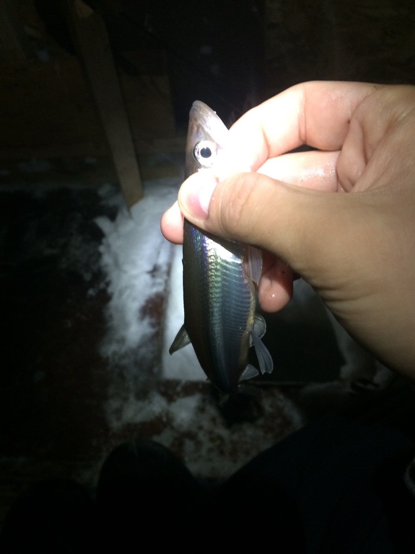 Le truc c’est de creuser un trou et attendre une touche. Pour favoriser la pêche, nous avons utilisé comme appât du lard que nous avons mit sur nos mouches colorées. Pour capturer un peu de ce poisson, il est nécessaire de connaitre l’horaire des marées car l’éperlan quitte la baie pour se retrouver au large lorsque la marée baisse et revient avec la marée montante. Pour initier une personne à la pêche blanche, c’est un très bon choix. J’ai vraiment aimée ma première expérience de pêche blanche. Ted, plus expérimenté dans cette pêche que moi, a réussi à attraper son quota. Quant à moi, j’ai réussi à prendre la moitié du mien, soit six douzaines.