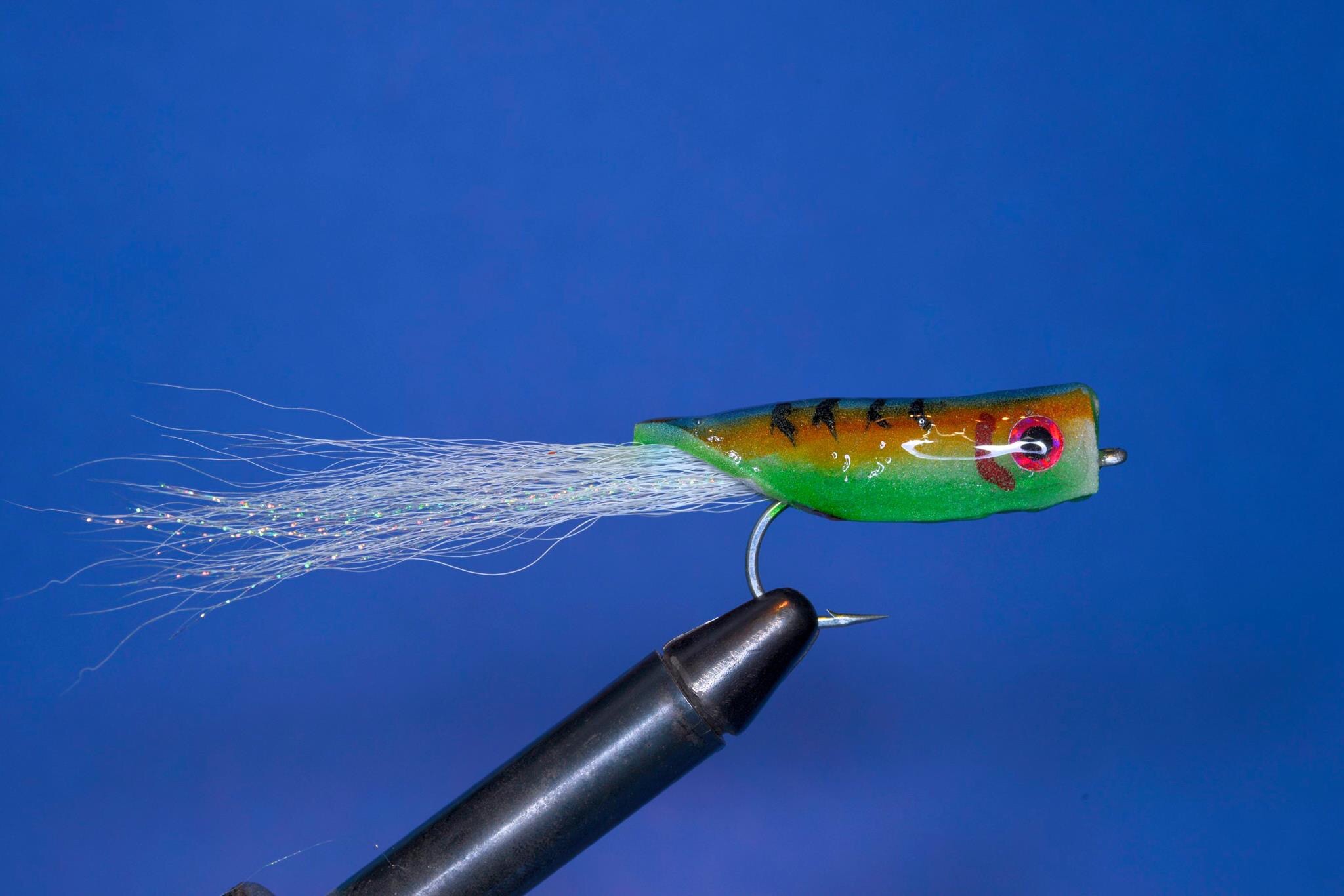 Ce poisson pouvant atteindre un poids plus que respectable, je conseille une canne à moucher avec soie 6wt au minimum. Pour ma part j’utilise une 8wt de 9 pied avec un bas de ligne de 7 pied en fluorocarbone de 20 livres. Pour s’adapter à l’alimentation du bar, les mouches utilisés le plus souvent sont des “clousers minnow”, des“deceivers” ainsi que tout autre montage imitant poissons appâts ou anguilles. Je recommande d’avoir dans sa boite à mouches plusieurs couleurs pour chaque modèle question de bien s’adapter à la turbidité de l’eau ainsi qu’à la perception des couleurs selon la profondeur d’eau. Le secret pour pêcher le bar réside dans la vitesse de récupération pour réveiller l’instinct prédateur de cette torpille aquatique.